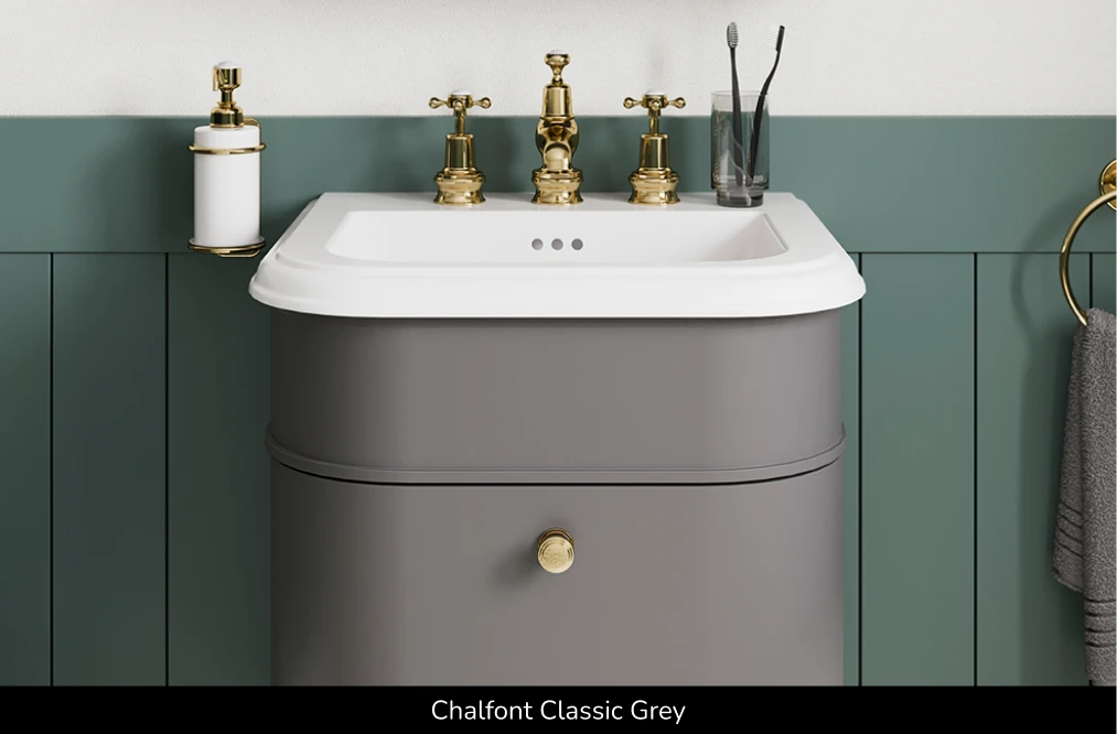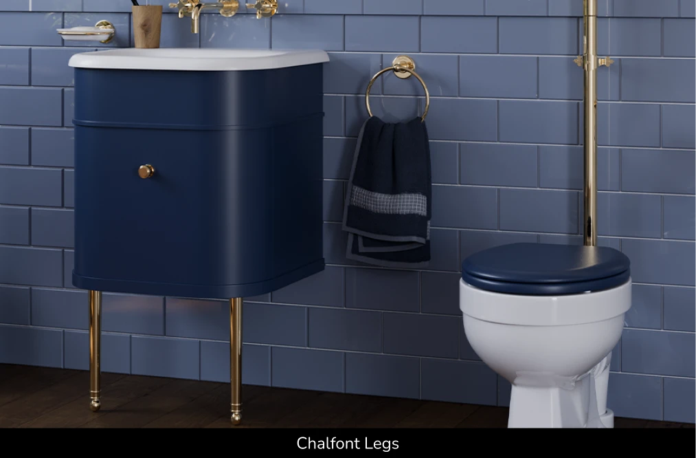 Providing impressive design flexibility, Chalfont units can be wall-mounted or paired with additional legs, available in matching colours or Chrome, Brushed Nickel and Gold finishes for a statement floor-standing design; a refined solution perfect for a timeless bathroom design.