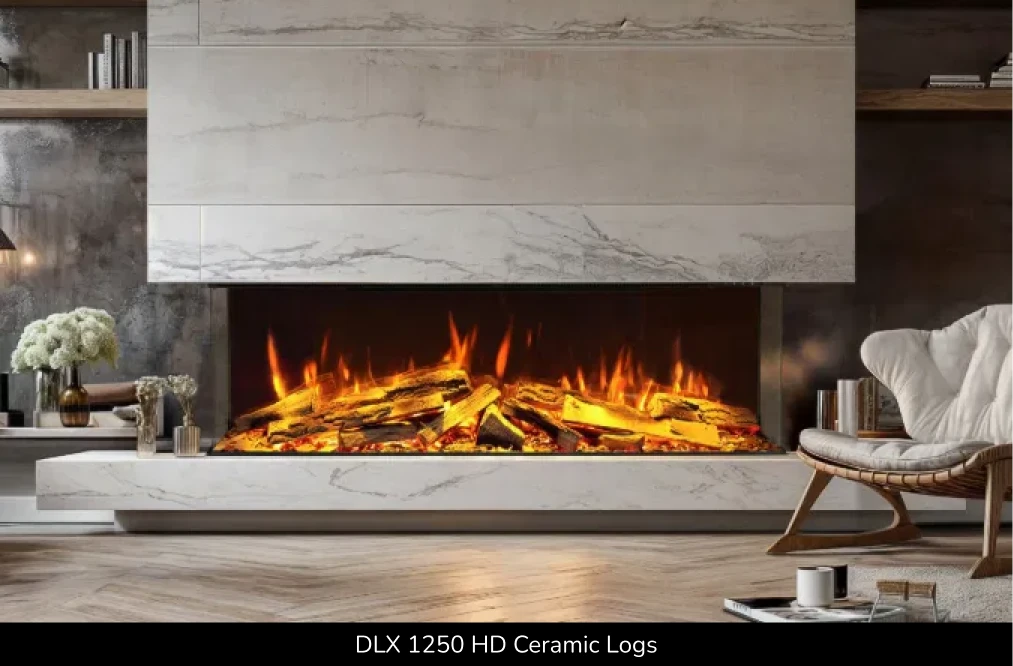 At the heart of the range is Celsi’s “Flame Projection Technology”, which places flame illusion not only at the back of the fire box, but into the front and centre of the fuel bed, resulting in a highly realistic log-fire effect that gives off depth and movement. Explore 3-sided glass electric fire UK, built-in electric fireplaces UK, panoramic electric fires and feature wall electric fires.