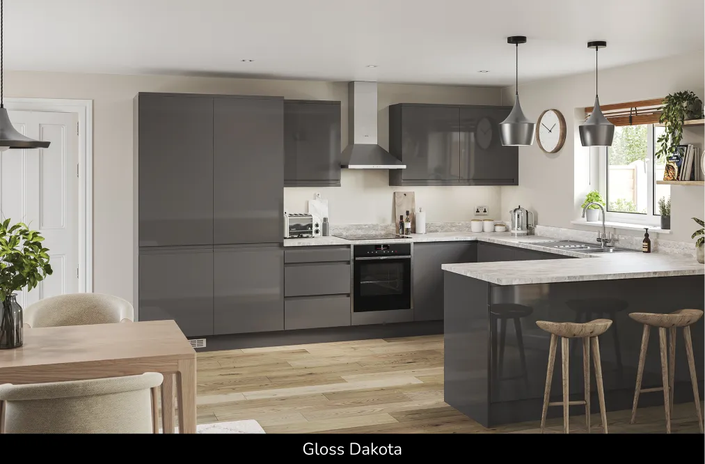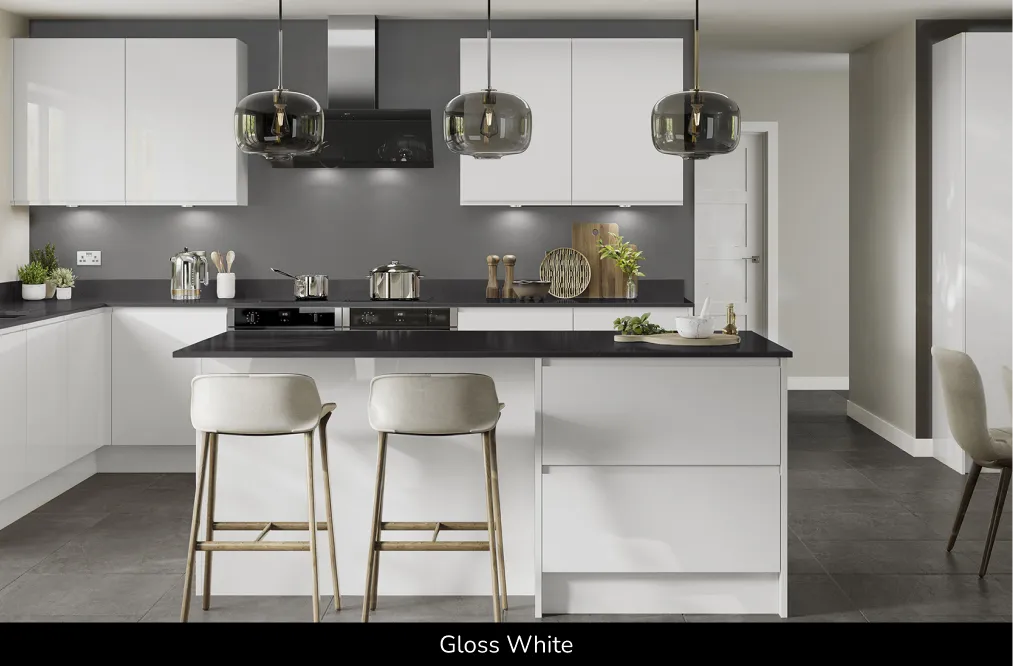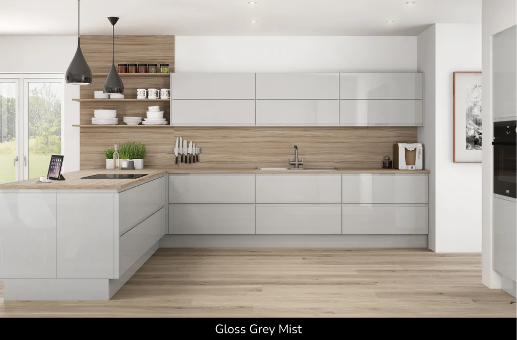 Available in a choice of four gloss finishes, these doors are crafted from premium 22mm MDF. The high-gloss painted surface enhances the sleek “J” pull handle design – often called “handleless” – to create bright, modern and stylish lines that flow seamlessly from door to door, even around corners. Explore sustainable kitchen panels, modern kitchen door range and handleless kitchen doors UK.